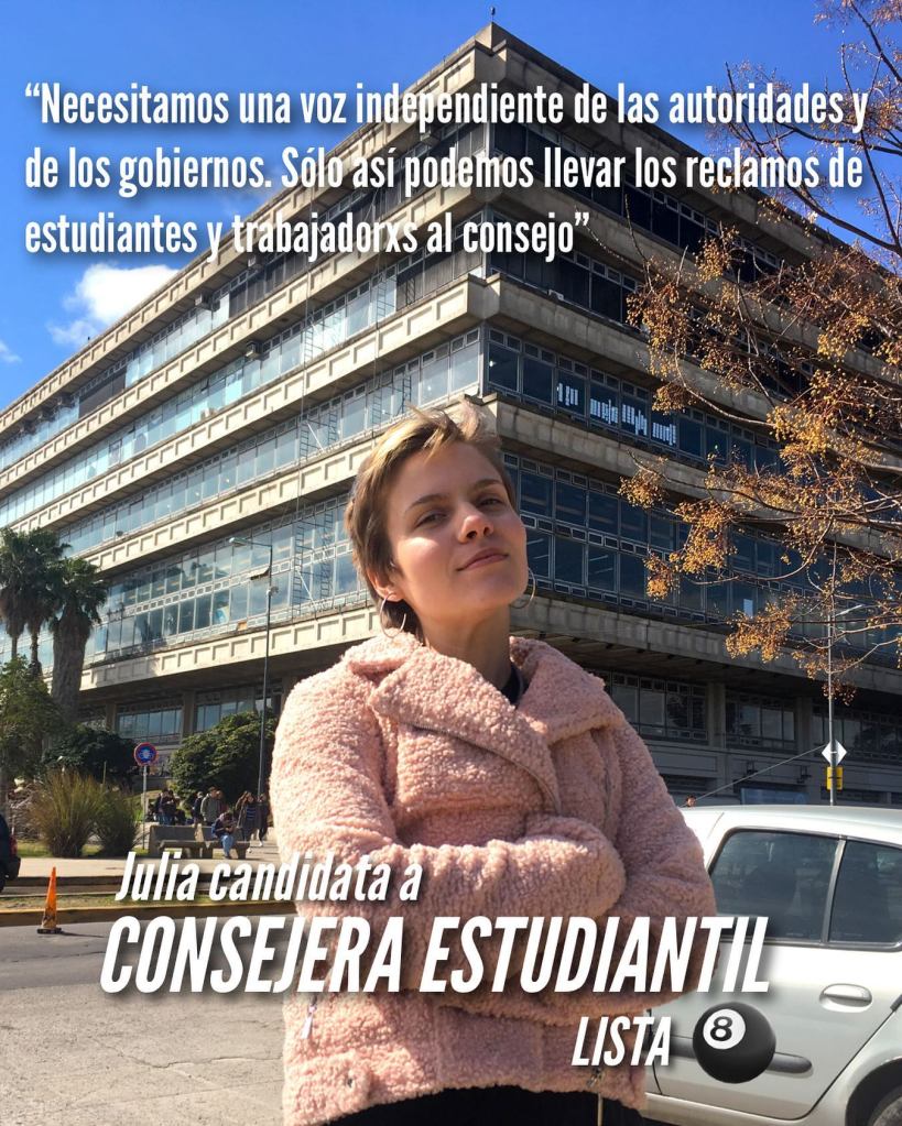 Recordé que en mi facultad estaban esos grupos políticos que empapelaban la FADU con papel afiche e interrumpían en las clases para hablar sobre cómo el decano de turno se hurgaba la nariz y acosaba a estudiantes rubias de arquitectura.